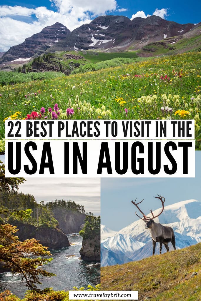 Wow — that’s a tough question! The Pacific Northwest (Washington and Oregon) is generally lovely to visit in August, as is the coast of New England (Maine, Massachusetts, and Rhode Island). Many national parks, like Glacier National Park and Yellowstone National Park, attract large crowds in August, as do popular cruising destinations like Alaska.