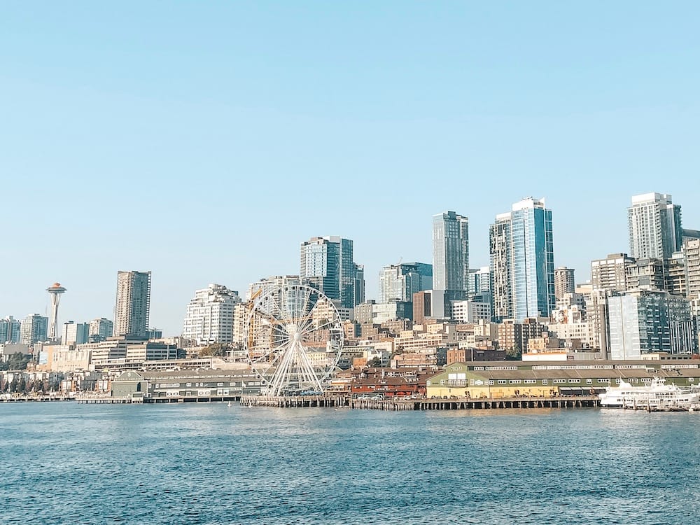 The Great Wheel in Seattle with Elliot Bay in the foreground